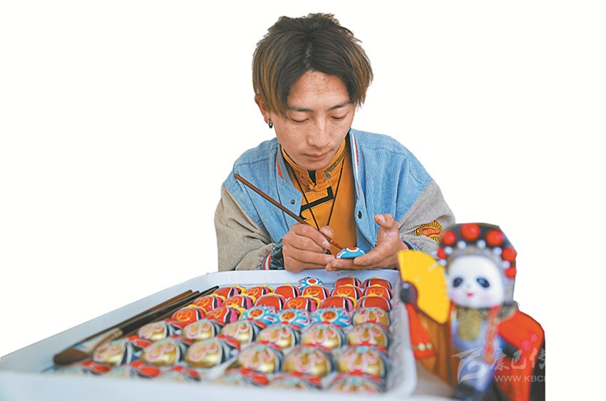 本著自主自愿的原則,教學(xué)班結(jié)束后,65名藏族青年主動(dòng)加入扶貧彩繪實(shí)訓(xùn)班,成為項(xiàng)目的第一批學(xué)員。“實(shí)訓(xùn)期間不需要交任何費(fèi)用,還包吃住。我對(duì)畫京劇臉譜很有興趣,我們第一個(gè)月學(xué)習(xí)繪畫基本功,第二個(gè)月開(kāi)始,根據(jù)成品質(zhì)量,就可以計(jì)件得酬勞,學(xué)習(xí)期間我每月能掙500多元?!壁雠f(shuō)。