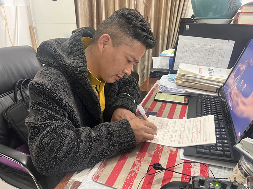 “尼瑪老師不僅對學生的學習生活關懷備至,作為任課教師,我們常??吹剿谛菹r間認真?zhèn)湔n。他會聲情并茂地大聲誦讀精心準備的課件,大家都覺得很有趣,學生學習的積極性也提高了。他批改作業(yè)也非常認真,給每一位同學寫的評語都用心用情。他是真的是用全部身心來對待工作,不愧是一名優(yōu)秀的老師?!辈稍L過程中,筆者偶遇了援建教師廖俊希,談起對章拉尼瑪?shù)挠∠螅慰∠5脑u價細致而中肯。
