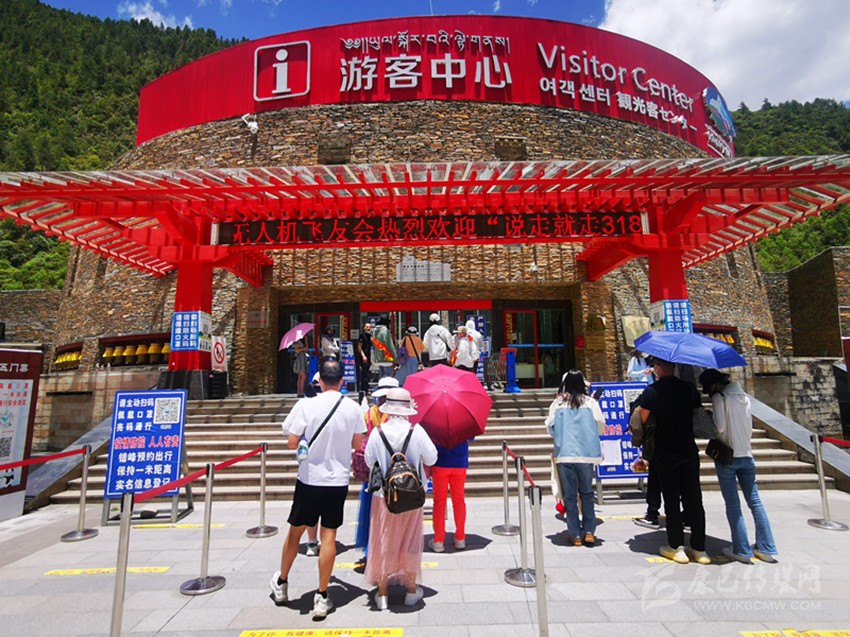 游客有序進入木格措游客中心。