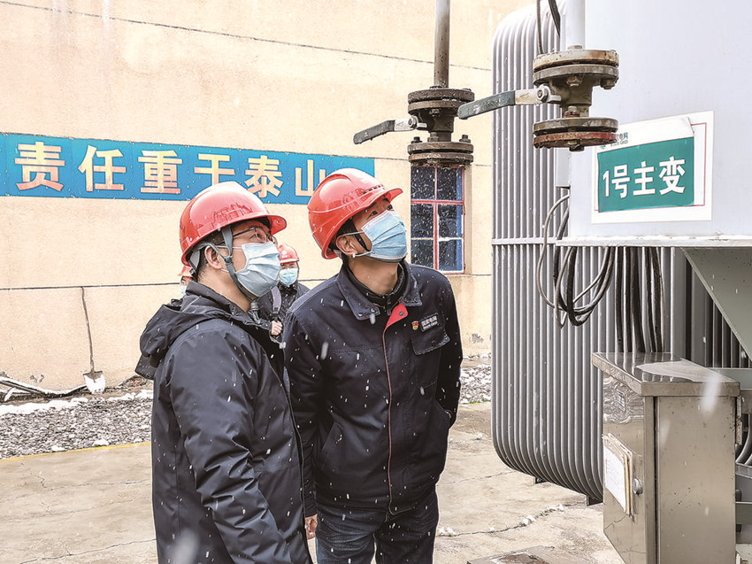 戴林(右)對城南變電站主變進行檢查。