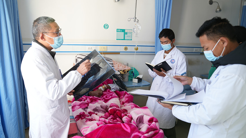 彭勇和彭措是鄉(xiāng)城縣本地的兩名外科醫(yī)生,也是藍(lán)忠榮的“徒弟”。為了提高帶徒效率,藍(lán)忠榮和他倆簽訂了對口支援“師帶徒”協(xié)議書,明確了個性化培養(yǎng)目標(biāo)和規(guī)范診療操作內(nèi)容,對常見病多發(fā)病診治、危重癥急癥處理等相關(guān)知識進(jìn)行教學(xué)指導(dǎo)。在藍(lán)忠榮的指導(dǎo)下,彭勇和彭措先后掌握了肌腱吻合術(shù)、橈骨骨折整復(fù)、石膏外固定等醫(yī)療技術(shù)。