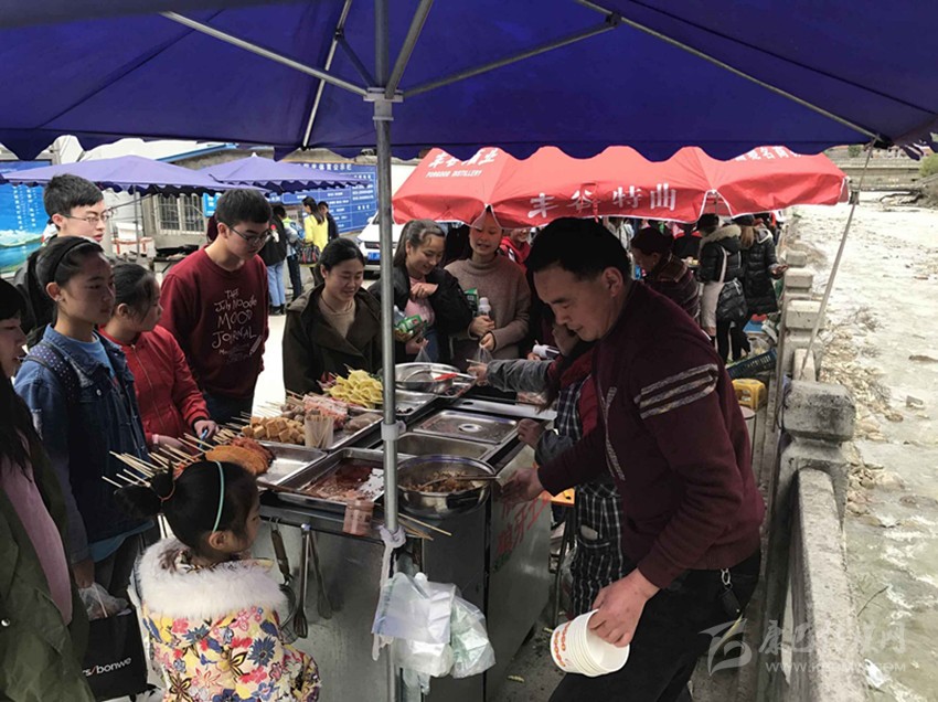 那么真實(shí)情況到底如何呢?7日,記者專門來到康定中學(xué)走訪調(diào)查。記者搭乘出租車前往學(xué)校,途中司機(jī)卻回應(yīng)“康中校門口那一段全是賣炸洋芋、炸雞腿的攤攤,車子根本開不過去,只能提前下車?!碑?dāng)記者步行過橋到達(dá)校門口路段時(shí),雜亂無序而又異常喧鬧的場(chǎng)面立刻映入眼簾。約摸十來家燒烤油炸“流動(dòng)攤點(diǎn)”上,商販們手中的烤具上下翻飛,幾十名身著“康定中學(xué)”校服的學(xué)生駐足其間,從校門出入的車輛不斷鳴笛避讓??久娼?、炸土豆、烤雞腿,濃濃的油煙、各種調(diào)料混合的氣味、滋滋的油炸聲……儼然一副“美食街”的火爆景象。