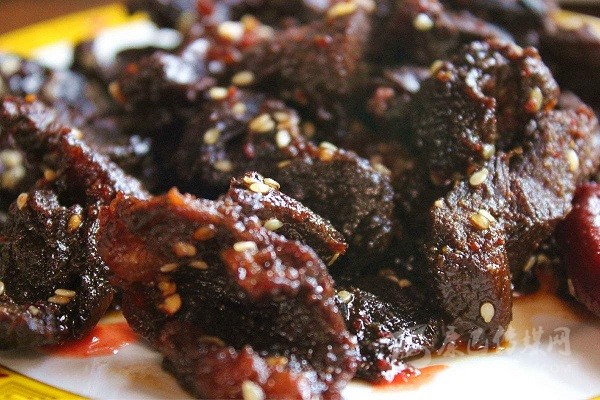 3500米以上地區(qū)這些地方生長著許多野生藥種如貝母,蟲草等,耗牛常食這些藥材,其肉鮮美無比,殺后可炒紅燒,清燉或涼曬成干巴等,其味獨特,吃耗牛肉在迪慶,實在是一種享受。并可在市場購買干巴,肉松等作饋贈青朋好友的禮品。牦牛肉可以粘辣椒油,味道仍然鮮美??刀ǖ呐H獠粌H有牦牛肉,還有熏牛肉等等,比起其他康定特產(chǎn)更是別具一番風(fēng)味。