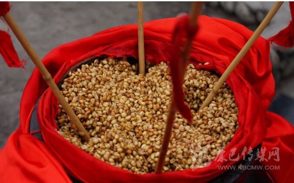 嘉絨語稱“恰鹵”。咂酒是青稞釀制而成的。首先取一定數(shù)量的青稞粒,一般5斤、8斤或10斤,在大鐵鍋中用水煮成八成熟后,放在簸箕里晾開,待冷卻后放上一定比例的酒曲,合勻,又裝入大鐵鍋中發(fā)酵三至四天,待聞到酒香味后,裝入壇中并加水,放置一天以上后,即可取汁食用,這個汁就是咂酒。咂酒味甘甜淳厚,十 分爽口,看似不醉人,但有的甘甜之中略帶苦澀,說明酒勁足,不勝酒力者應(yīng)少飲為宜。曾有人寫《飲咂酒詩》說:“成石雜糧一甕收,王侯到此也低頭,五龍抱住 撐天柱,咂盡黃河水倒流”。充分展示了咂酒的魅力和飲咂酒的那種愜意。境內(nèi)巴底、半扇門的上半鄉(xiāng)、太平橋鄉(xiāng)一帶的群眾喜愛煮咂酒,平日,家家都備有咂酒,親朋間禮尚往來、人情世故都送咂酒。喝咂酒是當?shù)氐囊淮罅?xí)俗。《章谷屯志(略)》記載了清朝后期宅壟土屯區(qū)的飲食習(xí)俗時說:“夷人(封建統(tǒng)治者對藏族的貶 稱)寨中置巨甕或木桶,富者大銅瓶盛酒,于內(nèi)植竹竿十余枝,跌坐于地互相吸飲,不杯杓勸酧(酬),無餚核(指熟食的魚肉干果),惟各布豬膘、牛肉、‘得木 鳥’(火燒子饃饃),醉飽而散”?,F(xiàn)在,巴底鄉(xiāng)、半扇門的上半鄉(xiāng)、太平橋鄉(xiāng)的大多數(shù)村寨仍然保留著這些習(xí)俗。在節(jié)日或慶典之時,在大壩子中間放一個大的壇子或木桶,里面盛滿含有酒糟的咂酒,然后插入麥桿數(shù)根,眾人圍個大圓圈跳鍋莊,口渴時依次吸之;或一人手持葫蘆,里盛咂酒,在眾人中依次轉(zhuǎn)之;或眾人盤腿 圍坐,傳一壺咂酒,稱喝“轉(zhuǎn)轉(zhuǎn)酒”。